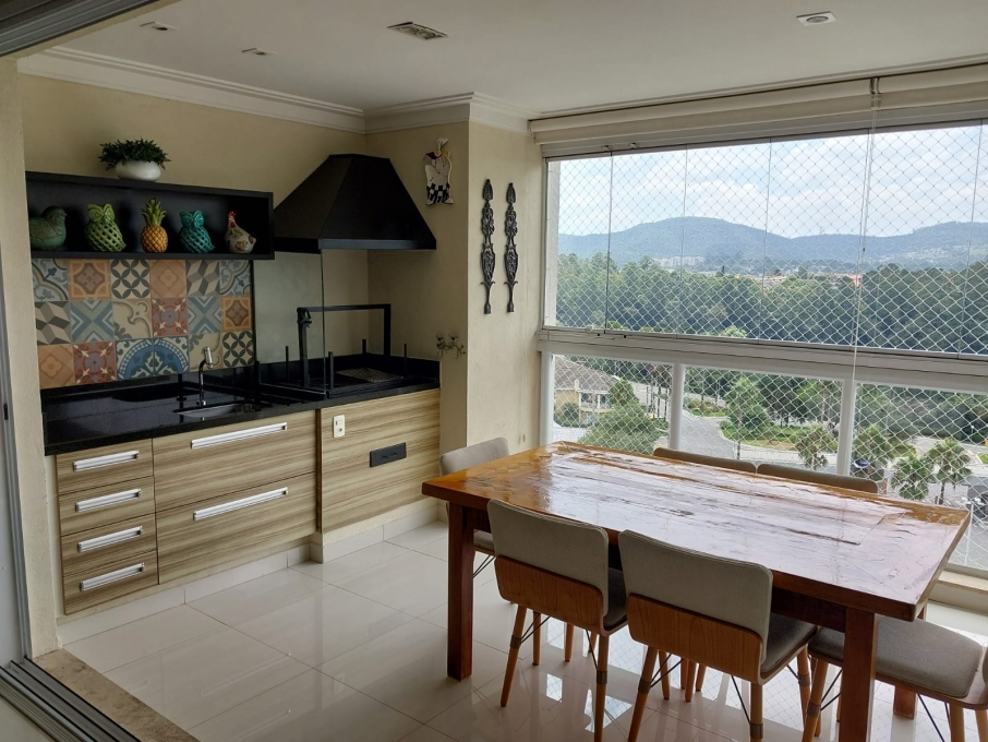 Apartamento amplo com 182 m², 3 suítes, living para 3 ambientes e terraço gourmet. Conta com copa/cozinha bem distribuídas, 3 vagas de garagem, mobiliado, excelente iluminação natural e vista permanente em todos os lados.